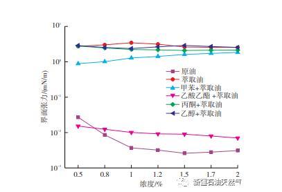 原油中活性物質(zhì)與堿作用下對(duì)界面張力的影響