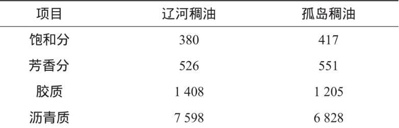 遼河和孤島兩種稠油組分的平均相對分子質量和元素分析結果見表3、4。