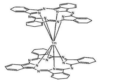 實驗所用材料是由山東大學化學化工學院姜建壯教授提供的三明治型酞菁銩化合物TmPc2,其分子結構如圖1所示。氯仿從市場購買,純度為分析純。以氯仿為溶劑,將TmPc2配制成一定濃度的溶液用于LB膜的制備。LB膜的制備在芬蘭產KSV-5000雙槽制膜系統(tǒng)上完成,在恒定的溫度和表面壓力下用水平提拉法制備成LB膜。