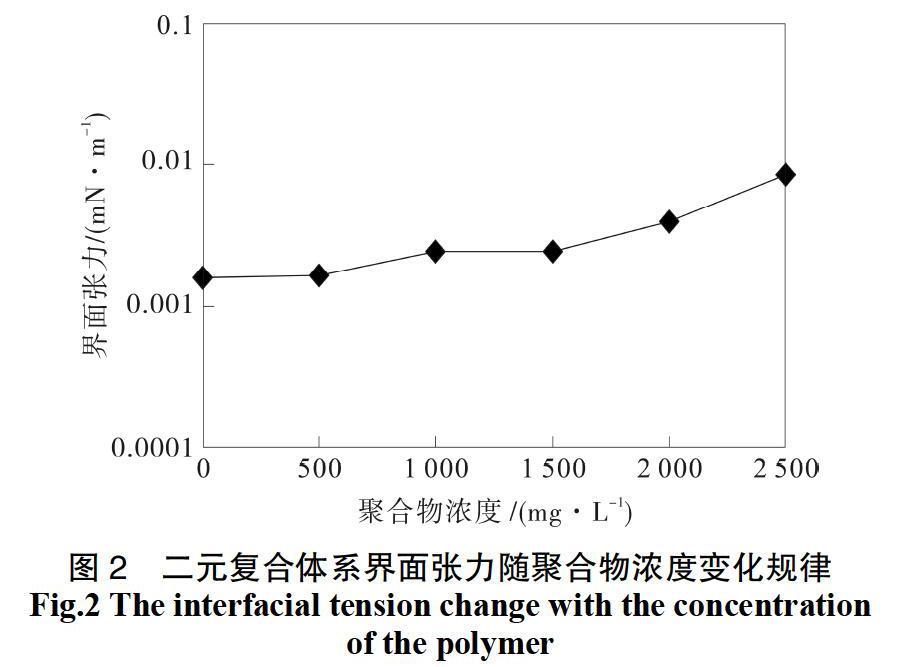 將無堿二元復合體系的界面張力隨聚合物濃度的變化規律繪制如圖2所示。