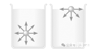 上圖左邊表示的是液體內(nèi)部的水分子,受到周邊水分子各個(gè)方向均勻的吸引力,合力為零;右邊表示處于表面的水分子,受到下方水分子的吸引力,上方無(wú)水分子不存在吸引力,這樣下方水分子合力不為零,方向往液體內(nèi)部。