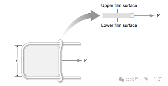 液體的表面張力促使液面收縮,對(duì)滑塊有一個(gè)向左的拉力,當(dāng)我們用一個(gè)向右的力與之平衡時(shí),可以獲得力的大小,然后與滑塊的長(zhǎng)度一起可以算出表面張力系數(shù)。