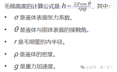 解答上述問(wèn)題,可以從毛細(xì)高度的計(jì)算公式中找到答案。