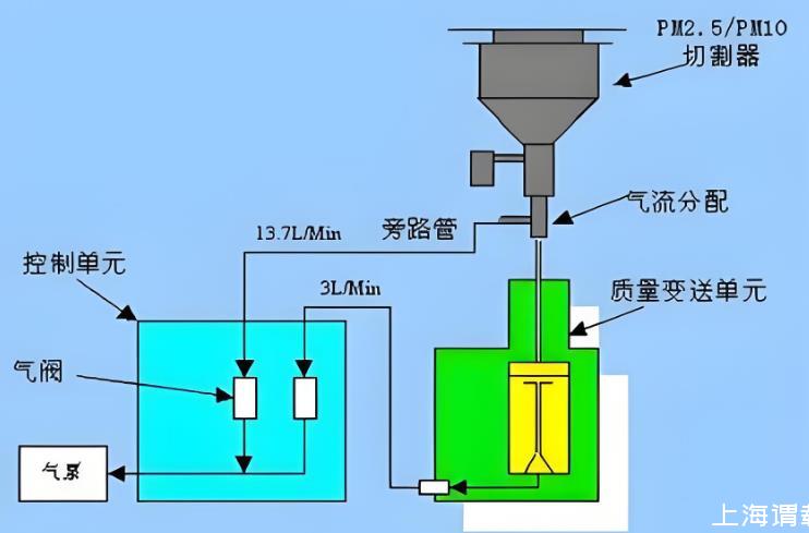 測(cè)量原理是基于錐形元件振蕩微量天平原理,核心部件為錐形元件振蕩器。錐形元件振蕩器在其自然頻率下振蕩,振蕩頻率由振蕩器件的物理特性、參加振蕩的濾膜質(zhì)量和沉積在濾膜上的顆粒物質(zhì)量決定。儀器通過采樣泵和流量計(jì),使環(huán)境空氣以一恒定的流量通過采樣濾膜,顆粒物則沉積在濾膜上。測(cè)量出一定間隔時(shí)間前、后的2個(gè)振蕩頻率,就能計(jì)算出在這一段時(shí)間里收集在濾膜上顆粒物的質(zhì)量,再除以流過濾膜的空氣的總體積,得到這段時(shí)間內(nèi)空氣中顆粒物的平均濃度。