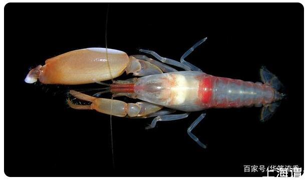 槍蝦是一種身長(zhǎng)只有5厘米的蝦,但是它有一大一小兩只熬。