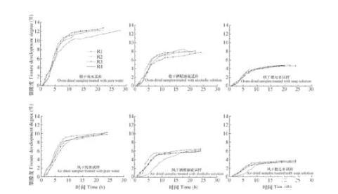 為了探究水中表面活性劑和有機(jī)化合物的加入對(duì)土壤裂隙發(fā)育的影響,本文通過(guò)在水中加入少量乙醇或肥皂(表面活性劑)來(lái)改變水的表面張力,對(duì)干濕循環(huán)條件下不同氣—液界面張力的土壤收縮開(kāi)裂特性展開(kāi)研究,對(duì)比分析了不同表面張力下土壤裂隙的發(fā)展演化過(guò)程,最后對(duì)其機(jī)理進(jìn)行了探討。