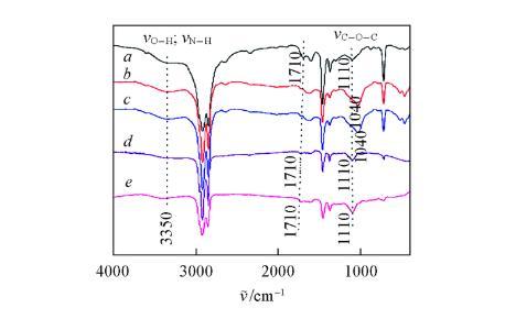 值得注意的是,所有組分的FTIR譜圖也存在明顯的區別:在3200——3400 cm-1范圍內,A3的吸收峰明顯弱于其它組分,表明A3的分子結構中締合的O—H和N—H含量較低,與A3的m(O)/m(C+H)與m(N)/m(C+H)值都較低的結果一致;在1710 cm-1處A,A3和A4均出現一個吸收峰,說明這些組分的分子結構中存在非締合的醛或羧酸(AR—COOH或R—COOH)或酮基;在1040——1110 cm-1范圍內,A1和A2的吸收峰強于A,A3和A4的,說明A1和A2的分子結構中含有較多的醚鍵;此外,在1040——1110 cm-1范圍內,與A,A3和A4相比,A1和A2的吸收峰紅移至1040 cm-1,這是由于醚鍵中的O與O—H或N—H基團之間形成氫鍵引起的,表明A1和A2具有較大的分子尺寸。