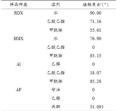 表1推進(jìn)劑組分和不同溶劑之間的接觸角