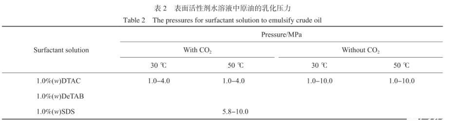 高壓CO2對表面活性劑水溶液與原油界面張力、原油乳化的影響——結果與討論、結論