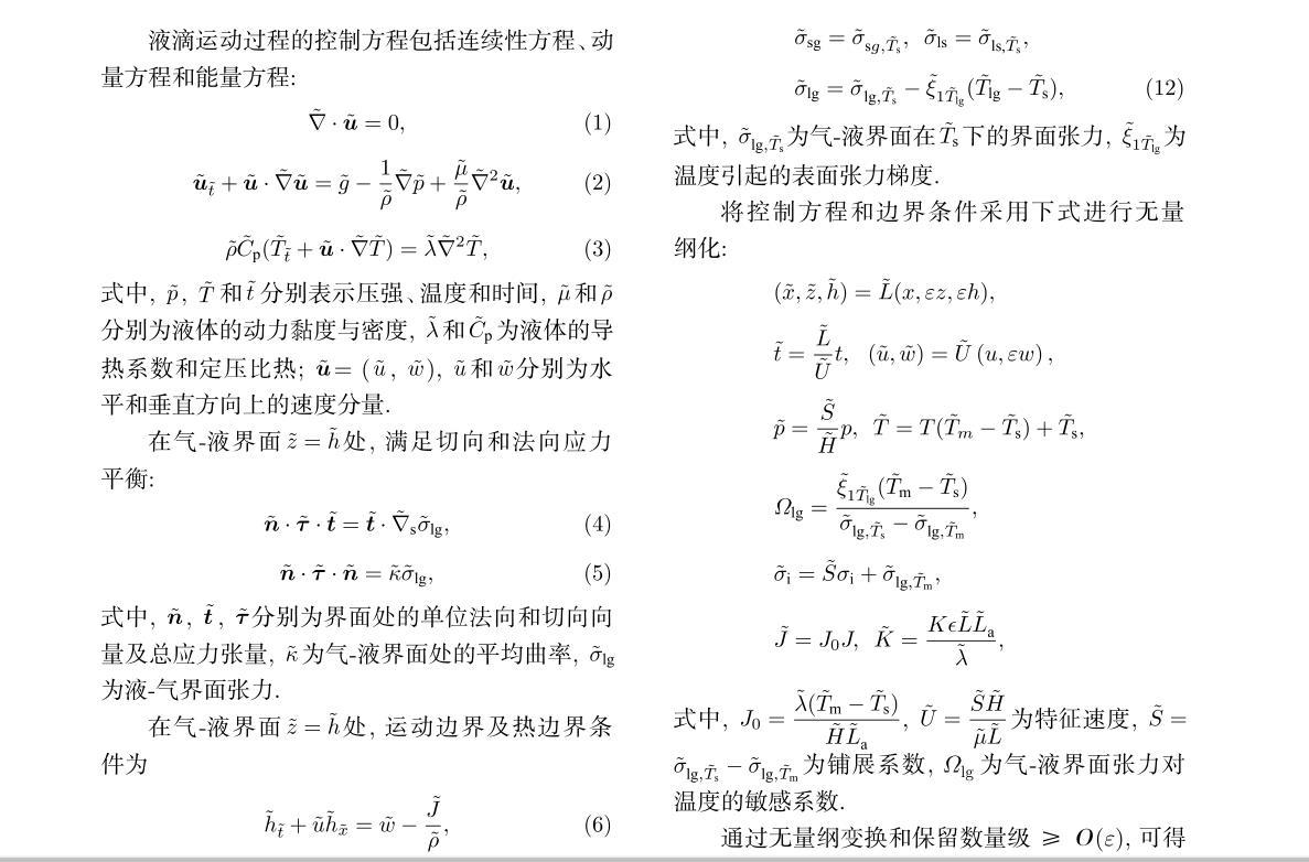 液滴運動過程的控制方程包括連續性方程、動量方程和能量方程: