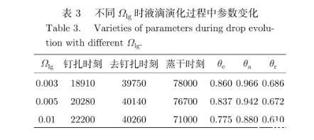 表3不同Ωlg時液滴演化過程中參數(shù)變化