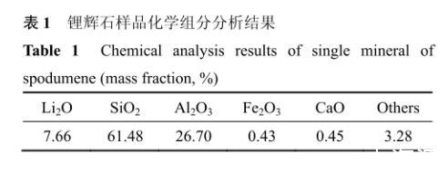 表1鋰輝石樣品化學(xué)組分分析結(jié)果