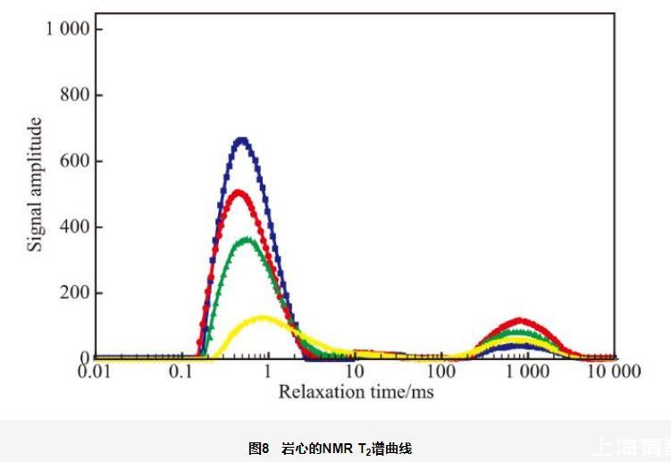 5)經(jīng)復(fù)合表面活性劑體系處理后,巖心含水飽和度由77.4%降至8.10%,巖心含油飽和度由66.7%降至11.25%;巖心中多孔介質(zhì)經(jīng)復(fù)合體系處理后,氣相滲透率由水侵污染后的23.09×103μm2恢復(fù)到53.59×103μm2,由油侵污染后的26.06×103μm2恢復(fù)到52.21×103μm2,由液侵污染后的30.20×103μm2恢復(fù)到54.98×103μm2。通過巖心自發(fā)滲吸實(shí)驗(yàn)、NMR實(shí)驗(yàn)以及巖心流動實(shí)驗(yàn)得出復(fù)合體系能夠有效預(yù)防巖心液侵和有效解除巖心液侵傷害。