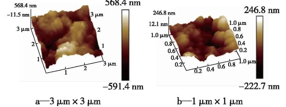 眾所周知,表面微結構形貌在增強表面超疏性能方面起著重要作用。圖2是超疏涂層的SEM圖像,圖3是超疏涂層的AFM圖像。