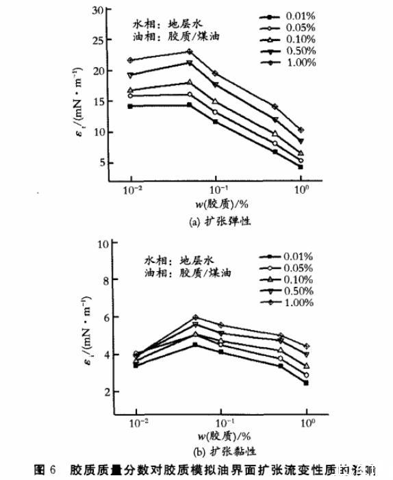 圖6膠質(zhì)質(zhì)量分?jǐn)?shù)對膠質(zhì)模擬油界面擴(kuò)張流變性質(zhì)的影響