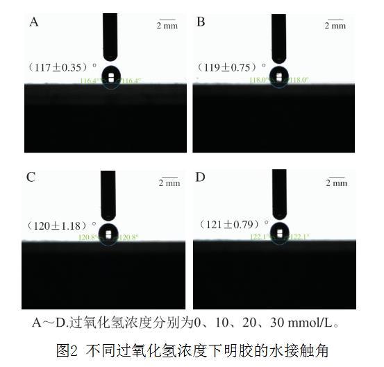 圖2 不同過(guò)氧化氫濃度下明膠的水接觸角