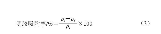 參考Tian Yan等的方法,并稍作改動(dòng)。將1.3.2節(jié)新鮮制備的乳液在20 ℃下以12 000 r/min離心30 min后,將油滴和吸附在油滴上的蛋白質(zhì)從水相中分離出來(lái)。隨后,用注射器抽取離心管底部的溶液,并用0.22 μm濾膜過(guò)濾。明膠吸附率按式(3)計(jì)算: