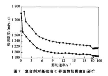 圖7復合劑對基礎油C界面剪切黏度的影響