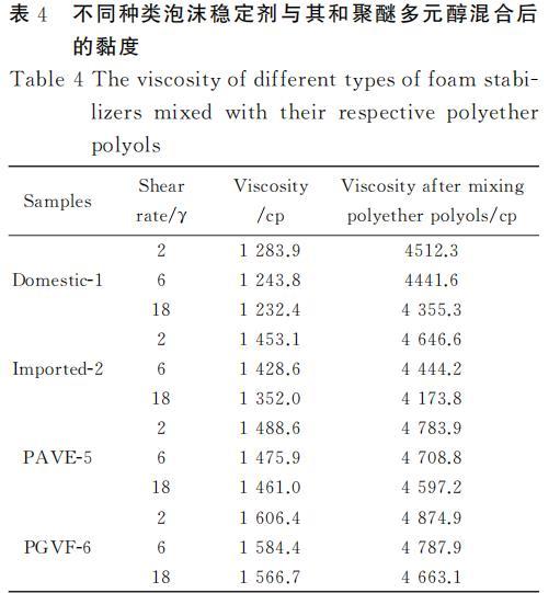 表4不同泡沫穩(wěn)定劑與對應聚醚多元醇混合后的黏度