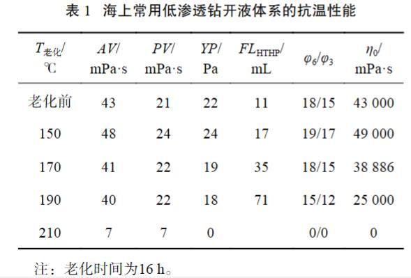 表1海上常用低滲透鉆開液體系的抗溫性能