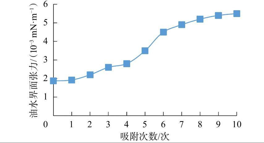圖4吸附次數(shù)對(duì)油水界面張力的影響