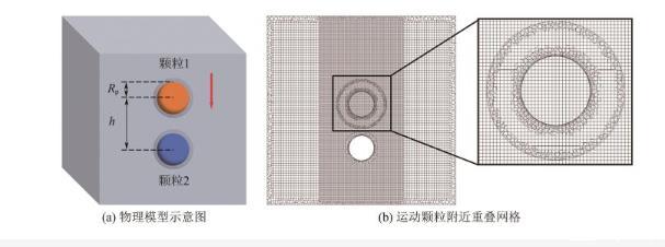 圖2 物理模型示意圖與運動顆粒附近重疊網格