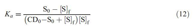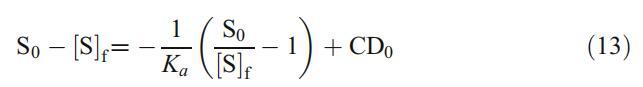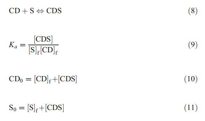 其中,CD/S、[S]f、[CD]f、CD0和S0分別為包合物、游離表面活性劑、游離CD、總CD和總表面活性劑濃度。通過組合和重新排列等式。9-11,我們得到了以下關系式: