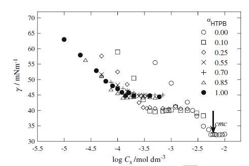 圖1界面張力γ與log Cs/mol dm的關系圖?3.對于HTPB+Mega-10混合體系,在不同α