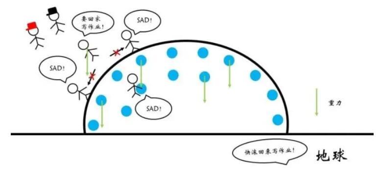 這樣的理解雖然直觀,但是缺少了幾分更加深入的視角,也沒辦法真正理解什么是表面張力。那怎么辦呢?我們來看看與力對應的能量(特指勢能)。以重力為例,大家可能聽說過重力勢能,即某一地球附近的物體由于處于一定的高度而蘊含的能量。更加直觀地講,如果以地面為勢能零點,則物體在重力的作用下下落到地面所能釋放的能量就是重力勢能。