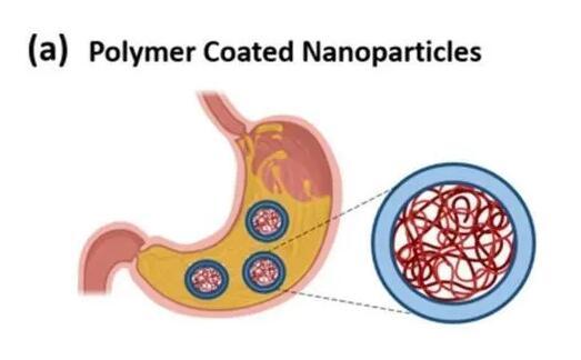 納米顆粒的高表面積體積比,提高了藥物的溶解性和穩(wěn)定性。納米粒的粒徑范圍一般為100~1000nm。藥物可以被包裹在納米顆粒中以獲得持續(xù)釋放,進(jìn)而保護(hù)藥物,免受劇烈的pH值變化和胃腸道惡劣的酶環(huán)境的影響。納米顆粒的大小、形狀、表面電荷會(huì)影響藥物的藥代動(dòng)力學(xué)。