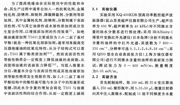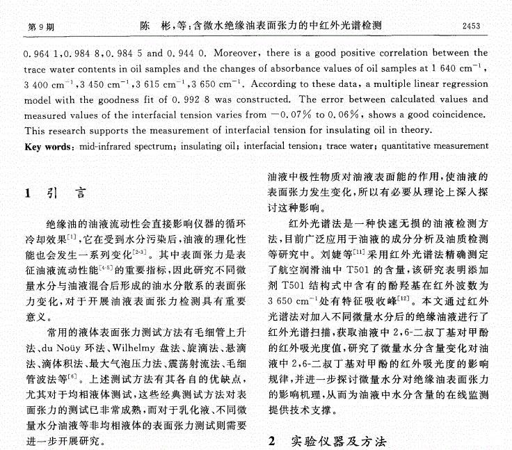 含微水絕緣油表面張力的中紅外光譜檢測