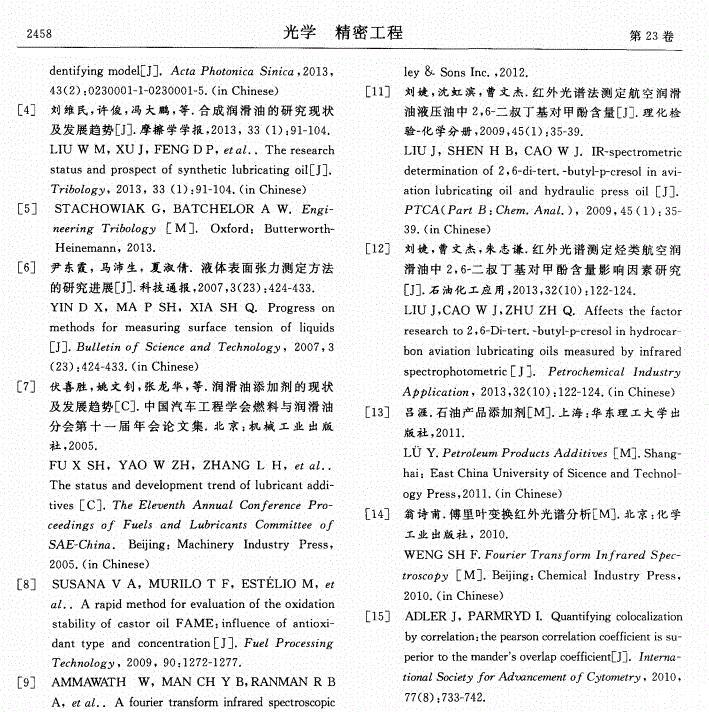 【摘要】:為了有效監控絕緣油的運行狀態,采用定量分析方法探討了微量水分對絕緣油表面張力的影響規律。通過配制不同微水含量的絕緣油樣,對每組油樣進行表面張力測試,然后對油樣進行紅外光譜掃描,獲取了油樣中水分在特征波數處(1 640,3 400,3 450,3 615cm-1)的吸光度值。分析了油液中2,6-二叔丁基對甲酚(T501)等添加劑對油樣表面張力變化規律的影響。結果表明:油樣中水分含量與水分特征吸光度值之間有較好的相關性(相關系數分別為0.964 1,0.984 8,0.984 5,0.944 0),油樣表面張力和1 640,3 400,3 450,3 615,3 650cm-1波數處油樣吸光度值的變化亦均呈現良好的正相關性。建立了油樣表面張力與特征波數處油樣吸光度值的多元線性回歸模型,擬合精度為0.992 8;根據模型得到的表面張力計算值與實際測量值誤差為-0.07~0.06%,吻合性較好。文中的實驗可為含微水絕緣油的表面張力檢測提供理論支撐。