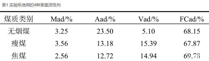 (3)表面活性劑因其自身的理化性質不同,其對不同煤質的潤濕性也不同。